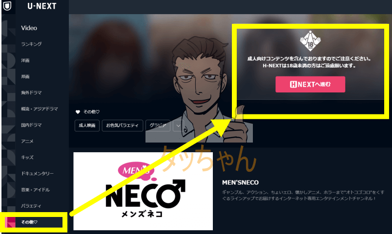 あくまで「U-NEXT」内のコンテンツの一部なので、「U-NEXT」に入会すると一般の映画やドラマやアニメと併せて「H-NEXT」も利用可能です。